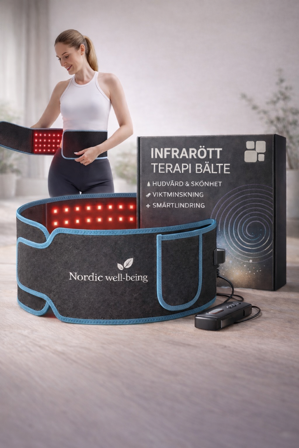 Bältet kombinerar infrarött ljus och behaglig värme i en stilren design. Det infrarödaljuset och värmen hjälper kroppen att slappna av och skapar en behaglig känsla i muskler och leder.